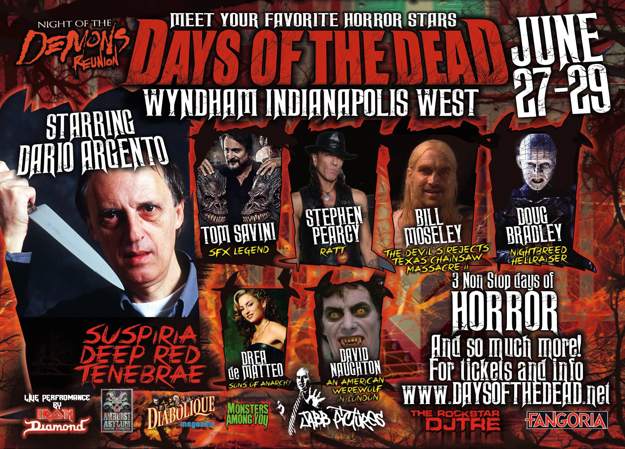 This year’s Indy show had a lot to live up to. It was the tenth ever DOTD. It’s been growing bigger and better every time. I’m happy to say that this year knocked it out of the park. Despite having two of their headliners being forced to cancel, Dario Argento and Dee Snyder, DOTD pulled off quite simply one of the greatest conventions I’ve ever been a part of. You know that something special is brewing when Tara Reid is so drunk she dances on a table in the hotel restaurant. And then proceeds to bust her ass. I’m dead serious.