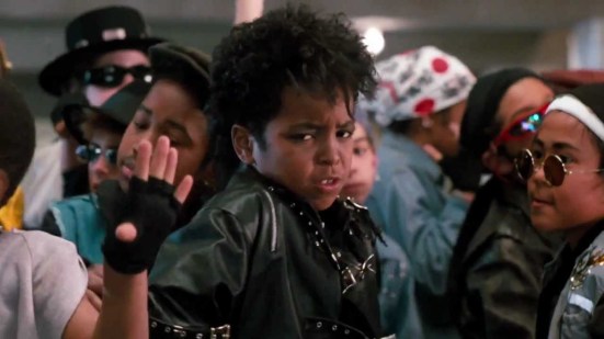 I like how all the kid dancers all have drawn on facial hair. It’s hilarious! #Moonwalker