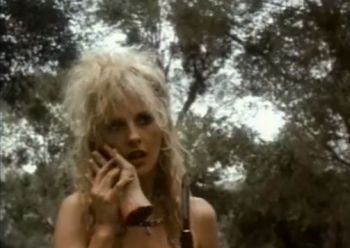 “You little some of a bitch! What did you do to Arnold?!” Well, it’s pretty obvious that your boyfriend was decapitated, lady. #HardRockZombies