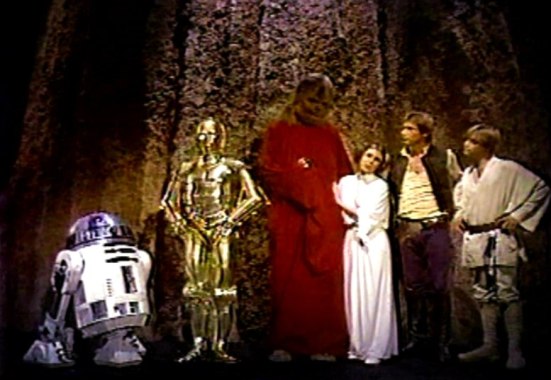 I like how Mark Hamill, Harrison Ford and Carrie Fisher look like their held hostage in this opening credits. #StarWarsHolidaySpecial