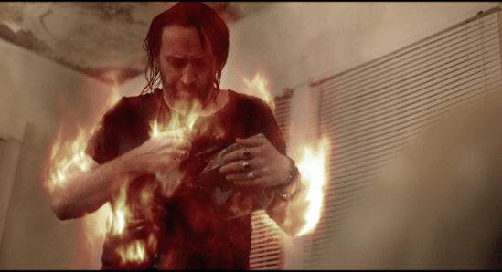 Holy shit! Cage just doused himself with petrol and is now setting himself on fire! This film is insane! #BetweenWorlds