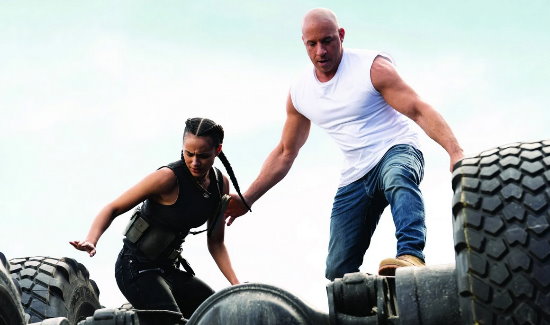 Personally I want a badass “Transformers” crossover. Dying for that one. Come on, tell me you wouldn’t watch that film? Toretto and company riding side by side with Optimus Prime and the Autobots, battling Megatron and the Decepticons …or Unicron. How freaking epic would that be!!? Getting giddy just thinking about it. So giddy. But until that nerdy time, let’s shift gears into this entry, shall we? As the story goes, after the events of the previous film, the Torettos – Dominic, Letty, (Vin Diesel, Michelle Rodriguez) and his son are living peacefully on the countryside fixing stuff and smiling at the quietness of it all. Their tranquility is cut short when the rest of the crew; Roman (Tyrese Gibson), Tej (Ludacris), and Ramsey (Nathalie Emmanuel) come calling with a dangerous mission.
